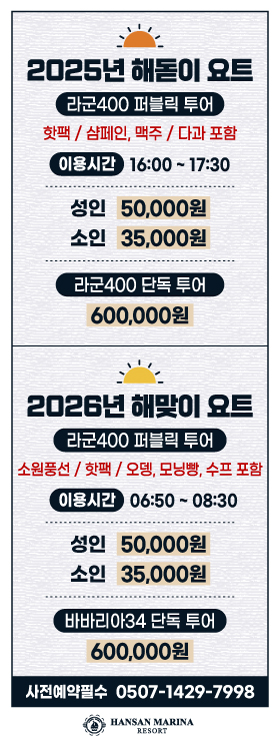 고성 한산 마리나 리조트에서 여러분을 모십니다.